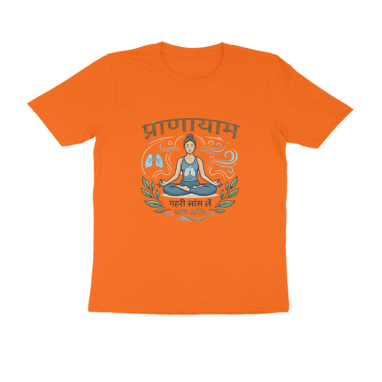 Made in India from high-quality, breathable pure cotton, this regular-fit T-shirt features a bold front print depicting Pranayam, symbolizing breath control, inner peace, and holistic wellness through traditional breathing practices. Unisex half-sleeve round-neck design ensures versatility across sizes S-XXL; pre-shrunk and colorfast for long-lasting wear. Ideal for wellness enthusiasts seeking authentic, ethically produced apparel that blends tradition with healthy lifestyle.