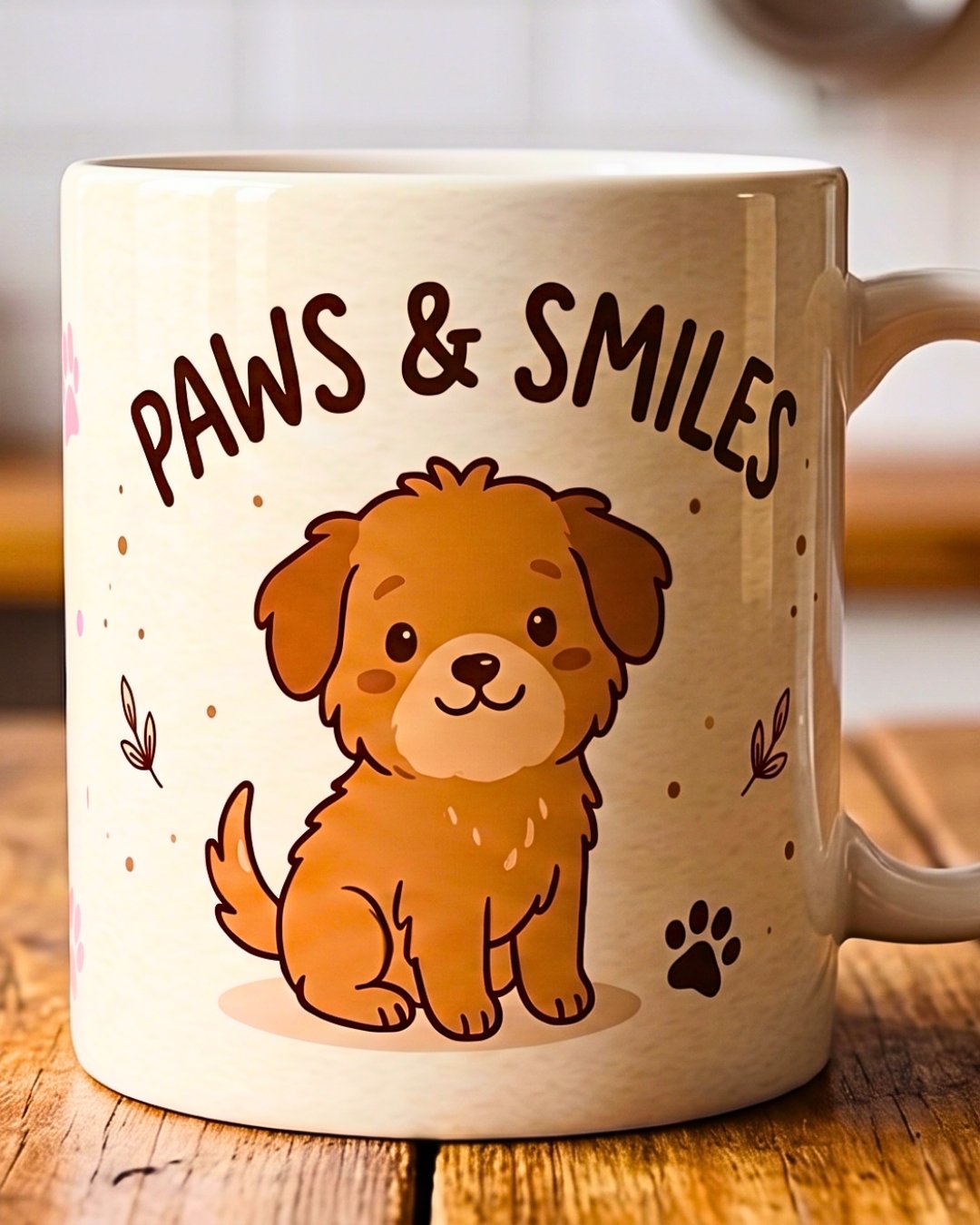 Paws and Smiles Cute Dog Design, Wagging Hearts Puppy Illustration, Pet Lover Graphic